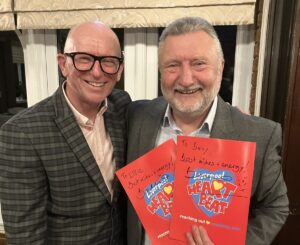 Bernie Hollywood OBE, David Gent with autographed copy of Bernie’s children’s book.